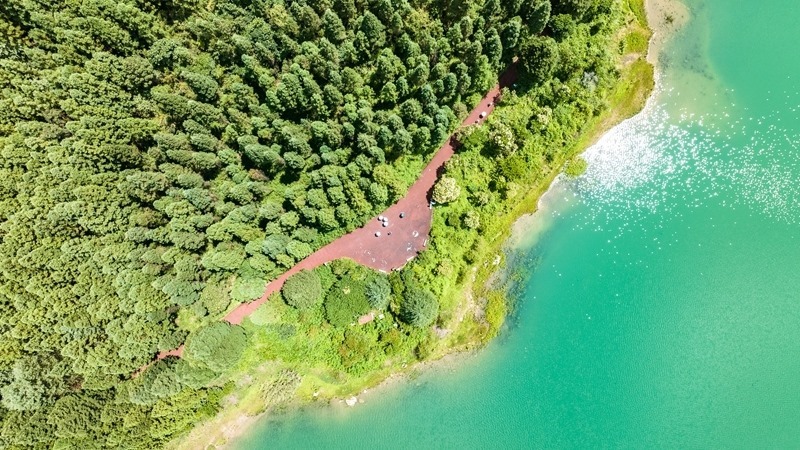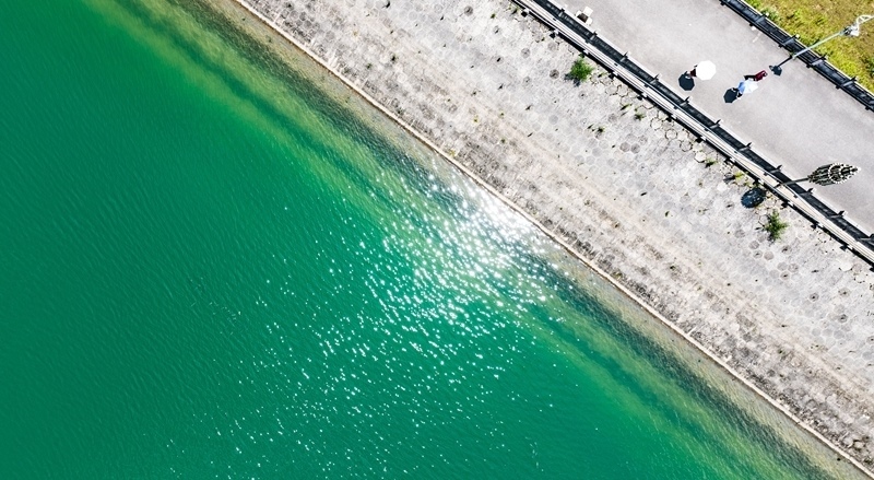 7月30日,游客在瑤池公園內(nèi)漫步游玩(無人機(jī)照片)。