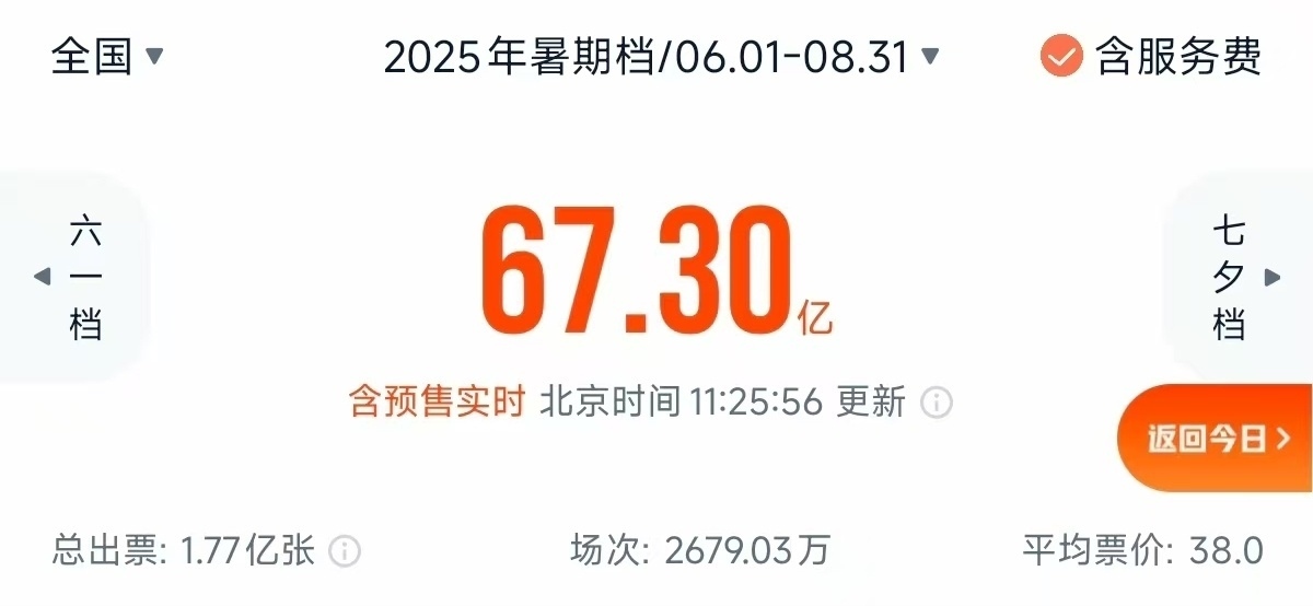 電影總票房(含預(yù)售)已突破67億元