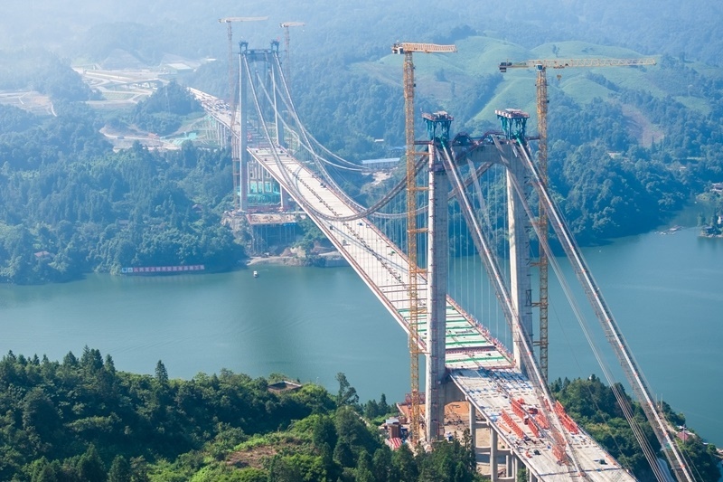 當日,隨著最后一段200余噸重的鋼混結(jié)合梁被緩緩提升,由湖南路橋建設(shè)集團承建的張官高速控制性工程洞庭溪沅水特大橋主橋順利合龍,為2026年全線通車奠定了堅實基礎(chǔ)。據(jù)了解,洞庭溪沅水特大橋位于湖南懷化市沅陵縣境內(nèi),全長1707米,主橋長800米,為雙塔單跨懸索橋。