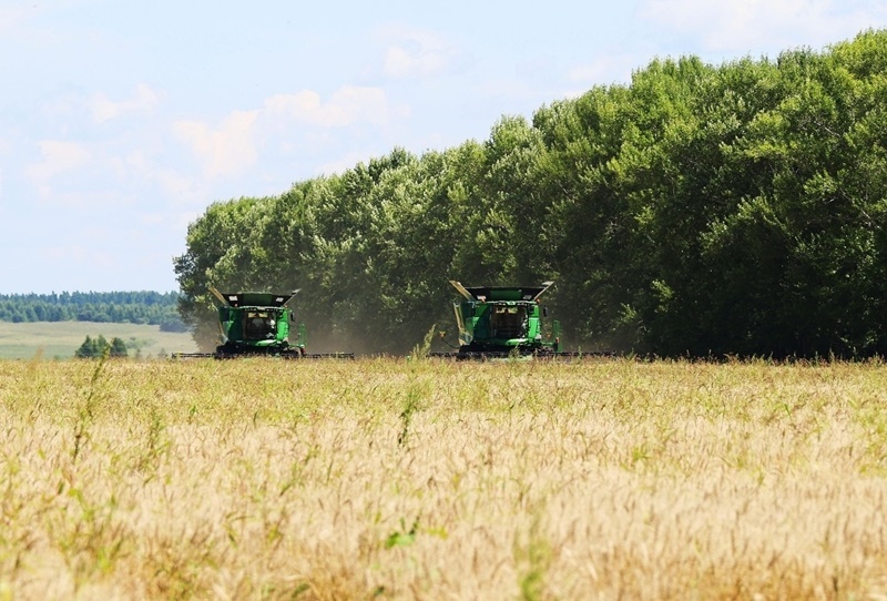 8月5日,位于黑龍江省五大連池市的大慶油田農(nóng)場調(diào)動多臺聯(lián)合收割機(jī)搶收小麥。