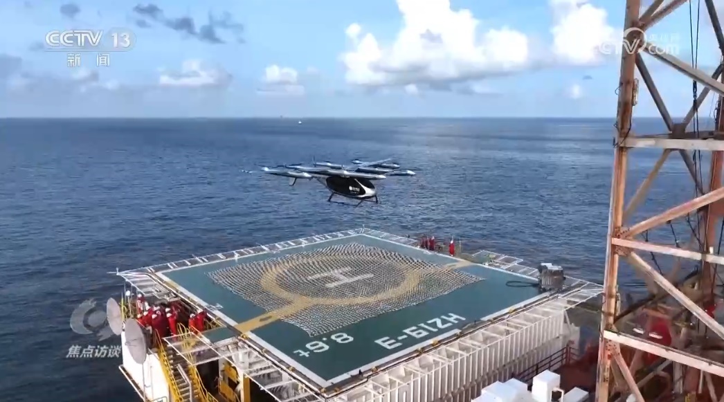 這天,一架兩噸重的電動(dòng)垂直起降航空器搭載著水果和藥品,從深圳市區(qū)起飛,歷經(jīng)58分鐘的跨海域飛行,抵達(dá)距深圳海岸線150公里的海上油氣平臺(tái),為平臺(tái)工作人員送去物資。