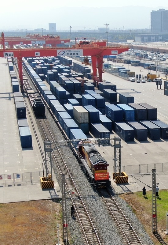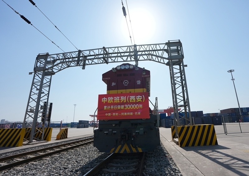 當(dāng)日上午,滿(mǎn)載著55個(gè)集裝箱光伏組件的X9043次中歐班列從西安國(guó)際港站駛出,開(kāi)往阿塞拜疆巴庫(kù),標(biāo)志著中歐班列(西安)自2013年開(kāi)行首列以來(lái)累計(jì)開(kāi)行突破30000列,開(kāi)行總量超過(guò)全國(guó)中歐班列累計(jì)開(kāi)行總量的四分之一。西安國(guó)際港站也成為了全國(guó)首個(gè)中歐班列開(kāi)行量突破30000列的車(chē)站,開(kāi)行量、貨運(yùn)量、重箱率等核心指標(biāo)位居全國(guó)第一。