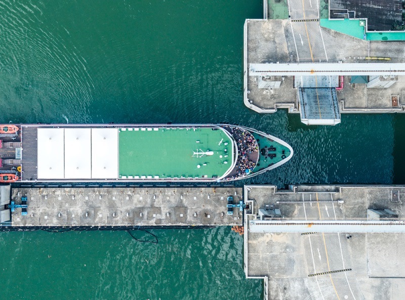 8月16日,在湖北省宜昌市,游輪滿載游客通過(guò)三峽升船機(jī)(無(wú)人機(jī)照片)。