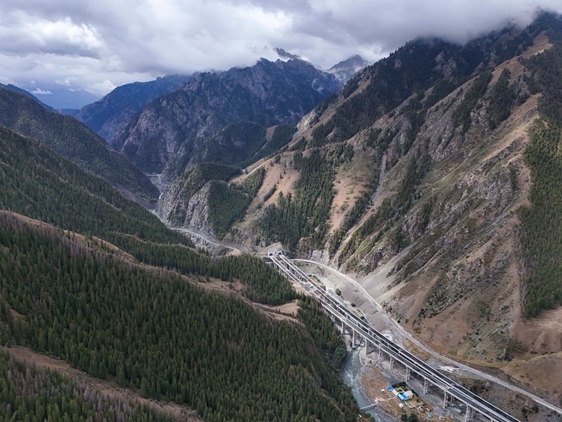 工人在新疆烏尉高速公路躍進(jìn)3號(hào)隧道南端施工(8月19日攝,無(wú)人機(jī)照片)。