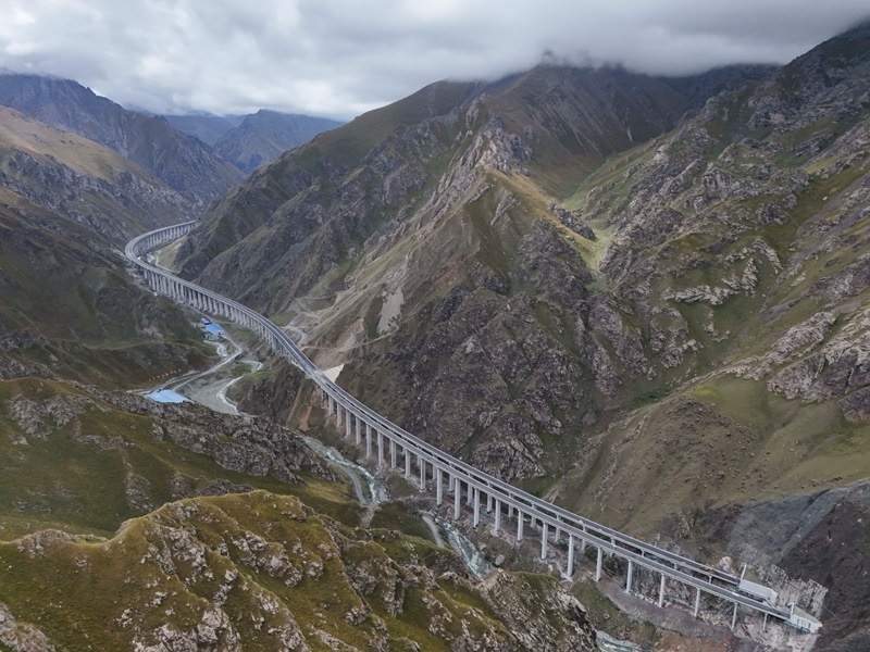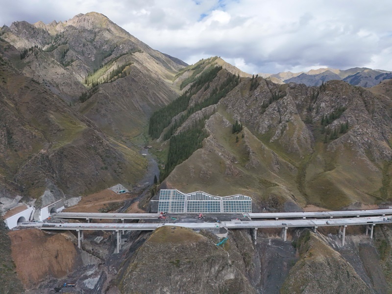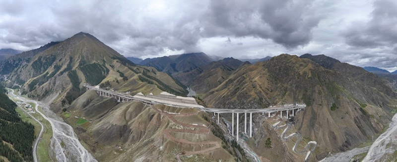 新疆烏尉高速公路穿越天山山脈(8月19日攝,無(wú)人機(jī)全景照片)。