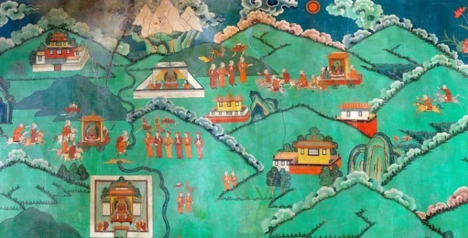 這幅布達(dá)拉宮壁畫講述了公元7世紀(jì),吐蕃贊普松贊干布統(tǒng)一青藏高原,迎娶唐文成公主,“漢藏一家親”的傳世佳話(資料照片)。新華社發(fā)