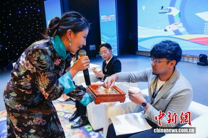 2024年8月18日,“同飲一江水 光影耀瀾湄”2024瀾湄國(guó)際影像周在青海省玉樹藏族自治州玉樹市正式啟動(dòng)。圖為來自瀾滄江-湄公河流域國(guó)家的6名青年代表品嘗玉樹酸奶、奶酪等當(dāng)?shù)靥厣r(nóng)畜產(chǎn)品。中新社記者 馬銘言 攝