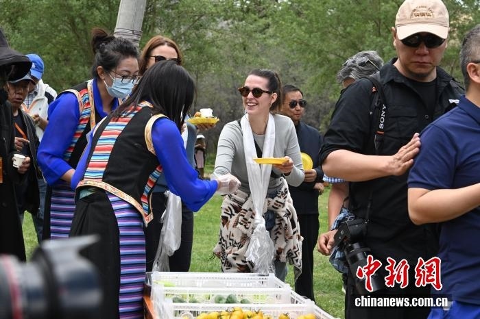 2025年6月5日,105位境外游客組成的國(guó)際旅行商考察團(tuán)走進(jìn)西藏山南市瓊結(jié)縣強(qiáng)吉村。他們參觀古建活化項(xiàng)目,觀看非遺展演,體驗(yàn)鄉(xiāng)村露營(yíng)。 中新社記者 貢嘎來(lái)松 攝