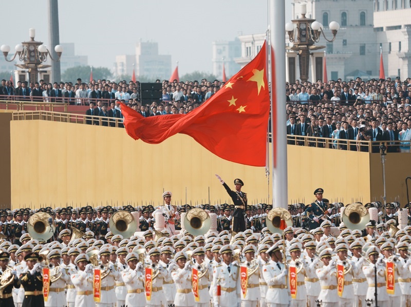 9月3日,紀(jì)念中國(guó)人民抗日戰(zhàn)爭(zhēng)暨世界反法西斯戰(zhàn)爭(zhēng)勝利80周年大會(huì)在北京隆重舉行。這是天安門(mén)廣場(chǎng)舉行隆重的升國(guó)旗儀式。