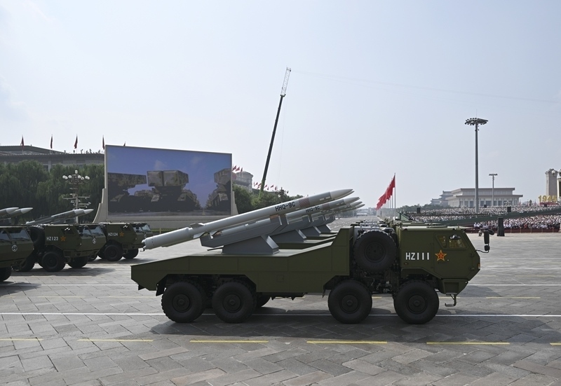 9月3日,紀念中國人民抗日戰(zhàn)爭暨世界反法西斯戰(zhàn)爭勝利80周年大會在北京隆重舉行。這是反艦導彈方隊接受檢閱。