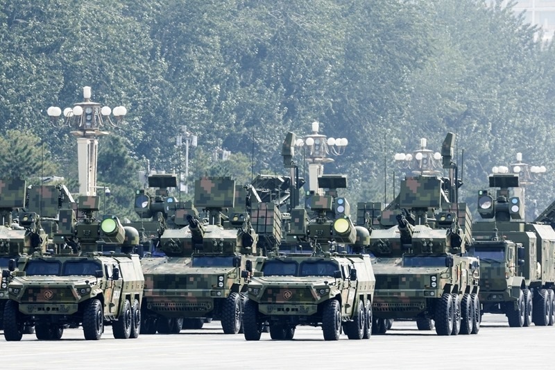 9月3日,紀念中國人民抗日戰(zhàn)爭暨世界反法西斯戰(zhàn)爭勝利80周年大會在北京隆重舉行。這是艦載防空武器方隊接受檢閱。