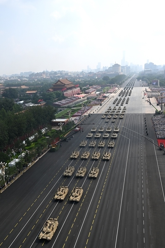 9月3日,紀念中國人民抗日戰(zhàn)爭暨世界反法西斯戰(zhàn)爭勝利80周年大會在北京隆重舉行。這是裝備方隊接受檢閱。