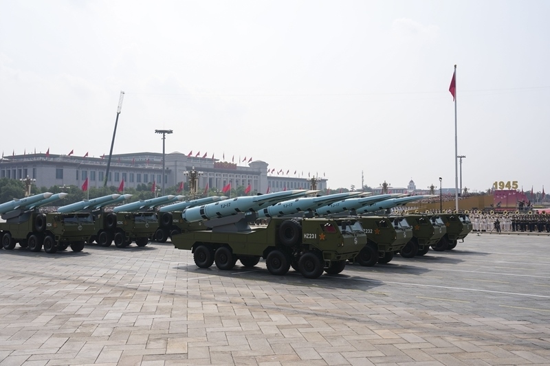 9月3日,紀(jì)念中國(guó)人民抗日戰(zhàn)爭(zhēng)暨世界反法西斯戰(zhàn)爭(zhēng)勝利80周年大會(huì)在北京隆重舉行。這是高超聲速導(dǎo)彈方隊(duì)接受檢閱。