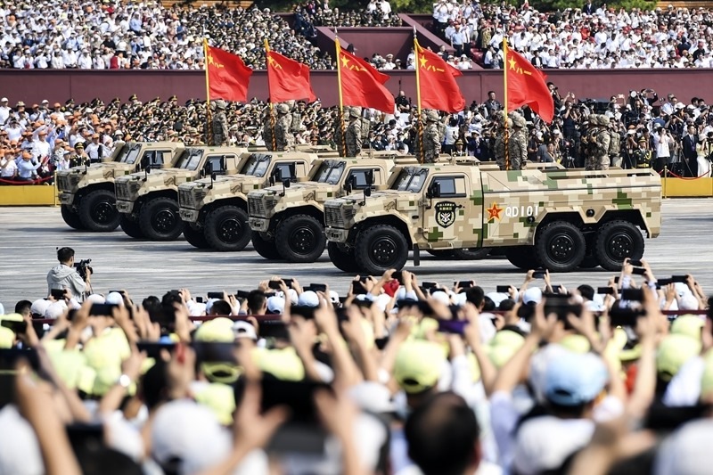 9月3日,紀(jì)念中國(guó)人民抗日戰(zhàn)爭(zhēng)暨世界反法西斯戰(zhàn)爭(zhēng)勝利80周年大會(huì)在北京隆重舉行。這是信息支援方隊(duì)接受檢閱。