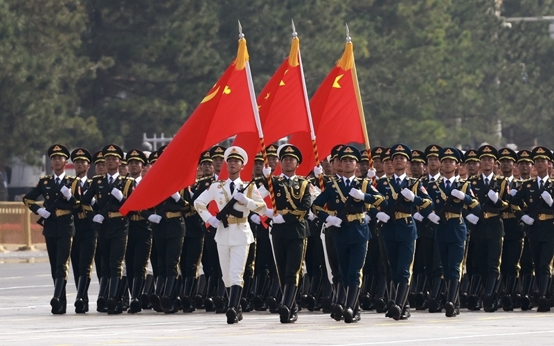 9月3日,紀(jì)念中國(guó)人民抗日戰(zhàn)爭(zhēng)暨世界反法西斯戰(zhàn)爭(zhēng)勝利80周年大會(huì)在北京隆重舉行。這是儀仗方隊(duì)接受檢閱。
