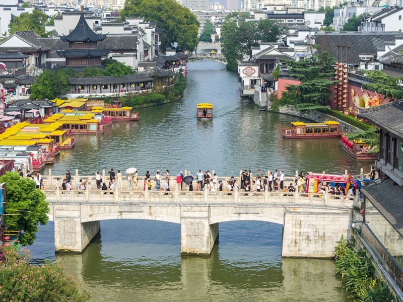 10月5日,人們?cè)谀暇┓蜃訌R景區(qū)游玩(無(wú)人機(jī)照片)。
