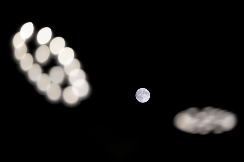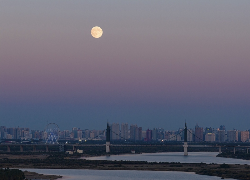 10月6日在黑龍江省哈爾濱市拍攝的中秋滿月(無人機照片)。