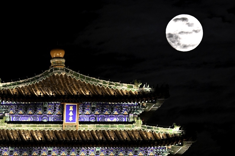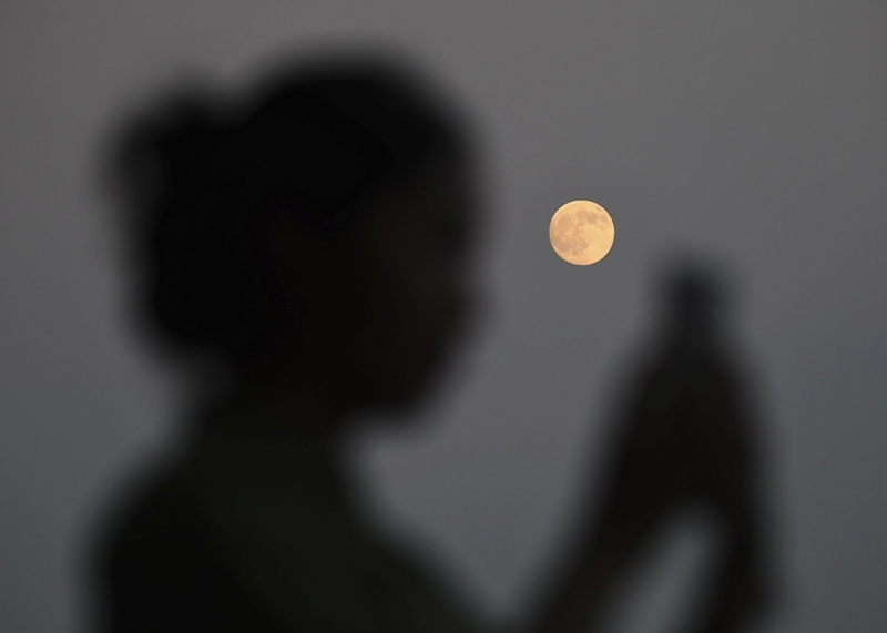 10月6日在黑龍江省哈爾濱市拍攝的“超級月亮”。