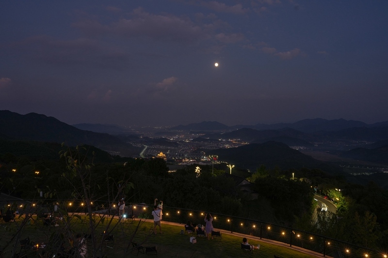 10月6日,游客在浙江省寧波市奉化區(qū)溪口鎮(zhèn)東山村一處觀景平臺賞月。