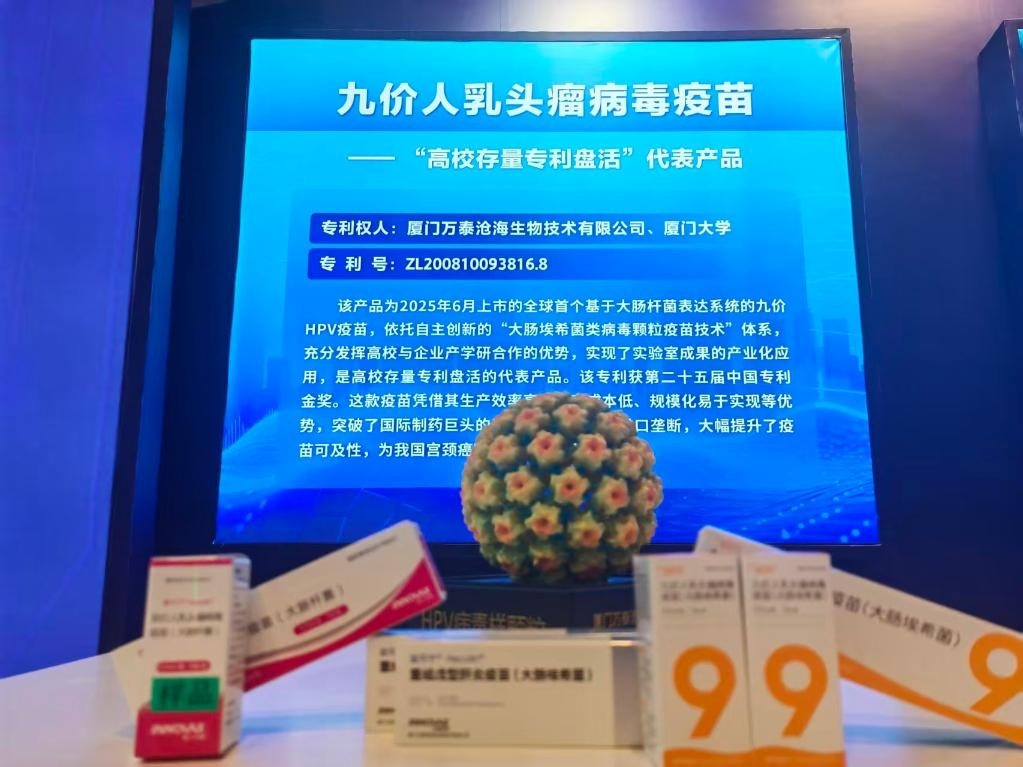 在第十四屆中國國際專利技術(shù)與產(chǎn)品交易會(huì)上展出的九價(jià)人乳頭瘤病毒疫苗。新華社記者徐鵬航 攝
