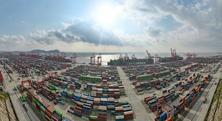 2024年12月18日拍攝的洋山港(無人機(jī)全景照片)。新華社記者 方喆 攝