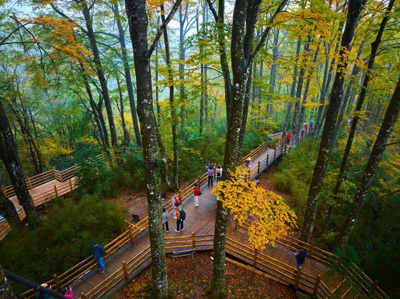 10月18日,游客在四川省光霧山風景區(qū)的天然畫廊暢游。