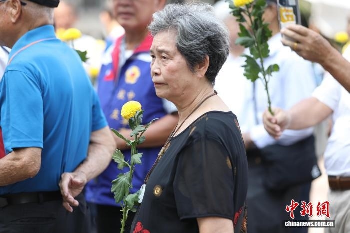 2025年9月3日是抗戰(zhàn)勝利紀(jì)念日,臺(tái)灣民間團(tuán)體當(dāng)天在臺(tái)北市中山堂廣場(chǎng)舉行抗戰(zhàn)勝利80周年紀(jì)念活動(dòng),緬懷先賢的犧牲奉獻(xiàn),呼吁正視歷史、珍愛(ài)和平。圖為臺(tái)灣抗日志士羅福星的孫女羅秋昭出席活動(dòng),向抗戰(zhàn)中犧牲的軍民同胞敬獻(xiàn)鮮花。 中新社記者 朱賀 攝
