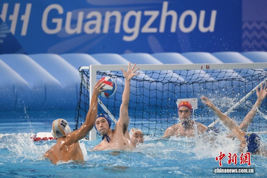 10月27日晚,在廣東廣州舉行的第十五屆全國運(yùn)動(dòng)會(huì)水球男子組比賽金牌賽中,廣東隊(duì)以16比9戰(zhàn)勝上海隊(duì),獲得金牌。圖為廣東隊(duì)運(yùn)動(dòng)員解澤楷(藍(lán)帽)在比賽中進(jìn)攻。