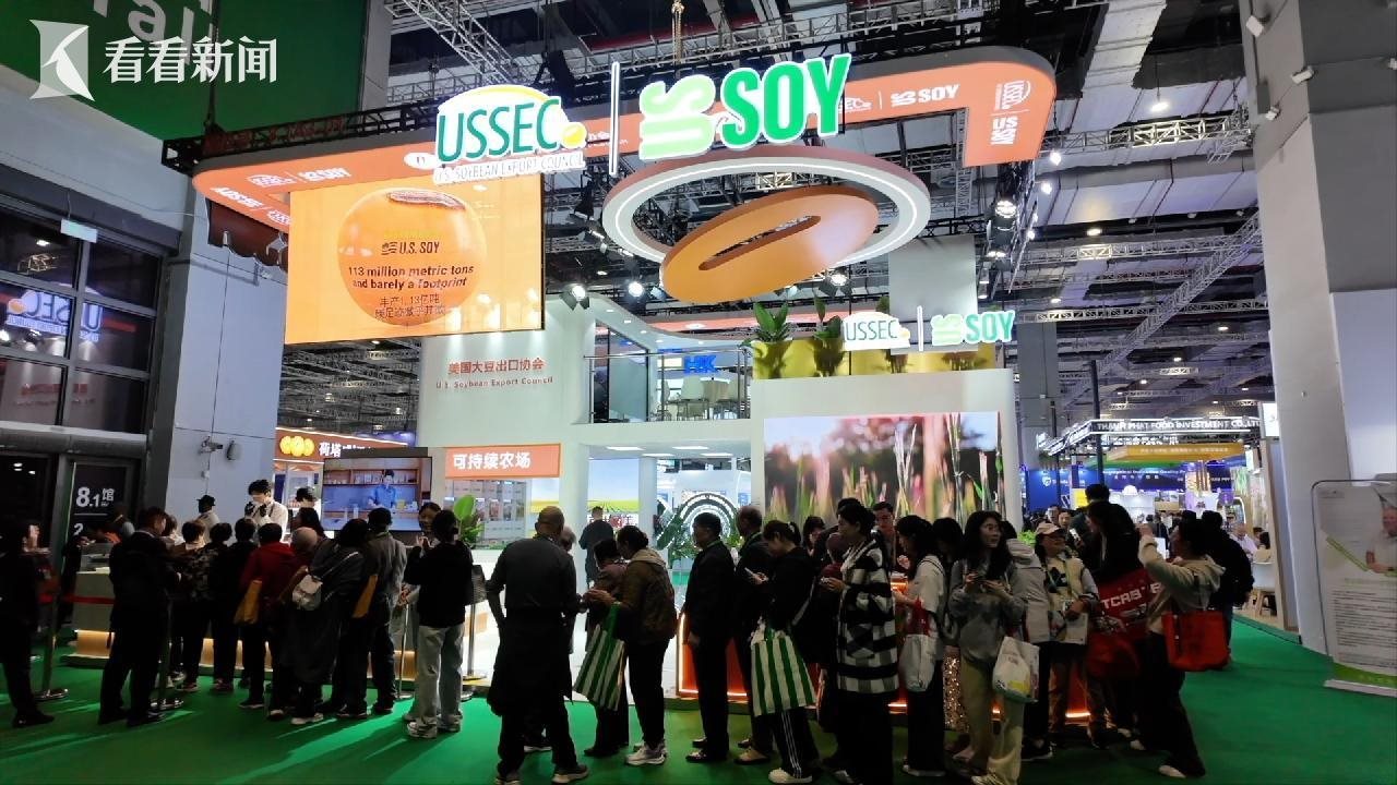 蘇健說的不是客套話。進博會一開始,他的行程就滿滿當當——開館剪彩、客商對接、媒體專訪。他的身后,是一群帶著中文名片、中文宣傳資料的豆農,賣力帶貨?!罢绱蠹以诂F場看到的,我們可以把大豆加工成大豆油,這種油品更適合高溫烹飪?!泵绹罐r蓋思凱說。