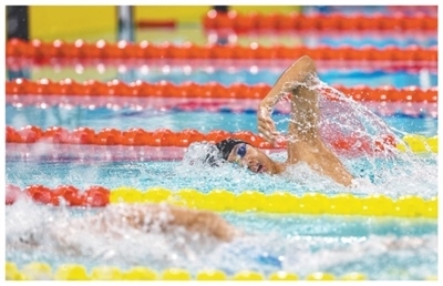 山東隊(duì)選手張展碩在十五運(yùn)會(huì)游泳項(xiàng)目男子1500米自由泳決賽中。環(huán)球時(shí)報(bào)記者 崔 萌攝