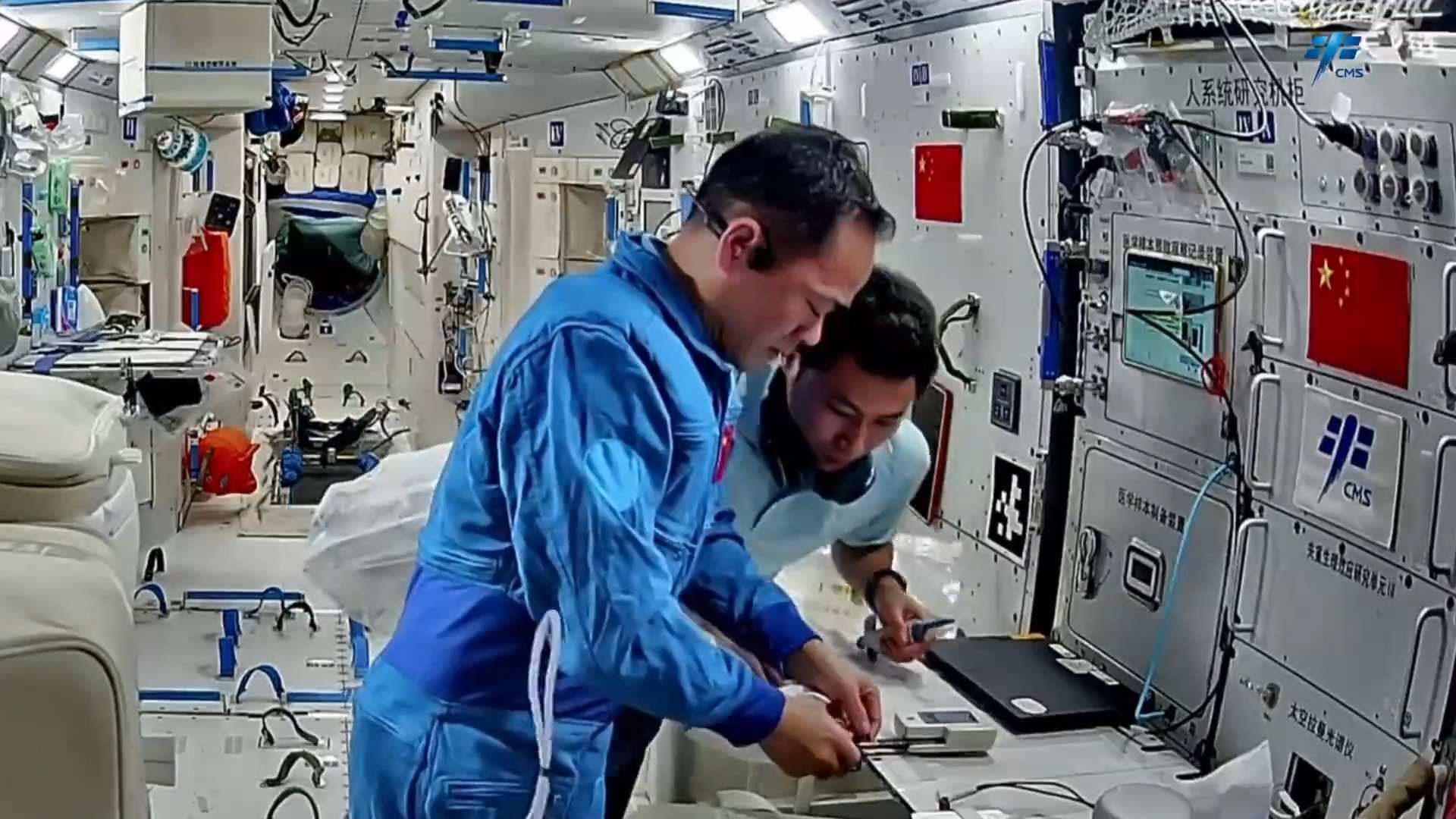 在設(shè)備檢查維護(hù)方面,乘組開(kāi)展了低溫存儲(chǔ)裝置及-80℃空間冰箱巡視、環(huán)控氣瓶壓力檢查、再生生保系統(tǒng)設(shè)備維護(hù)等工作。