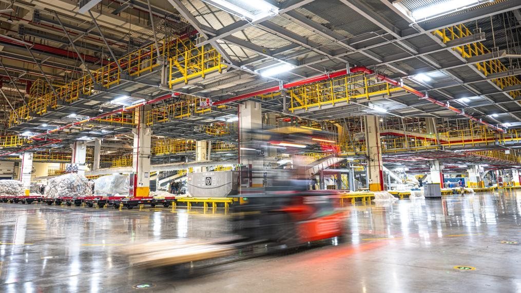 跟隨轉(zhuǎn)運(yùn)車,記者來到了建筑面積達(dá)75萬平方米的機(jī)場“工”字形轉(zhuǎn)運(yùn)中心。這里,“快點(diǎn)、快點(diǎn)”的催促聲與機(jī)器有節(jié)律的運(yùn)行聲形成交響,在2萬多臺自動分揀設(shè)備和50多公里長傳送帶的支持下,工人們熟練地將數(shù)量規(guī)格不一的包裹抱起、分類、組合、打包,再拼裝出多個符合航空貨運(yùn)規(guī)格和形狀要求的大包裹。
