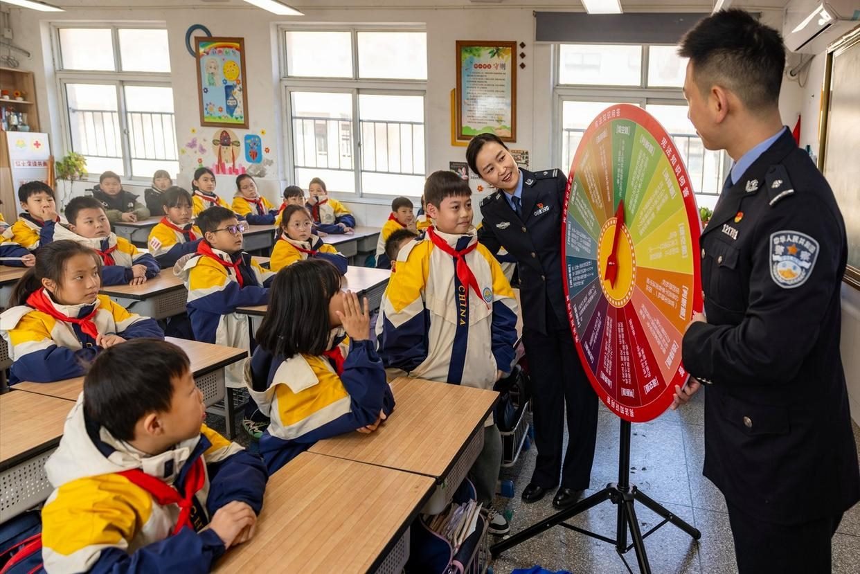 12月2日,安徽省舒城縣公安局網(wǎng)監(jiān)大隊(duì)聯(lián)合五顯派出所走進(jìn)五顯鎮(zhèn)中心學(xué)校課堂,為同學(xué)們帶來了一堂沉浸式、互動(dòng)式的法治教育課。(工人日報(bào)通訊員 王可海 攝)