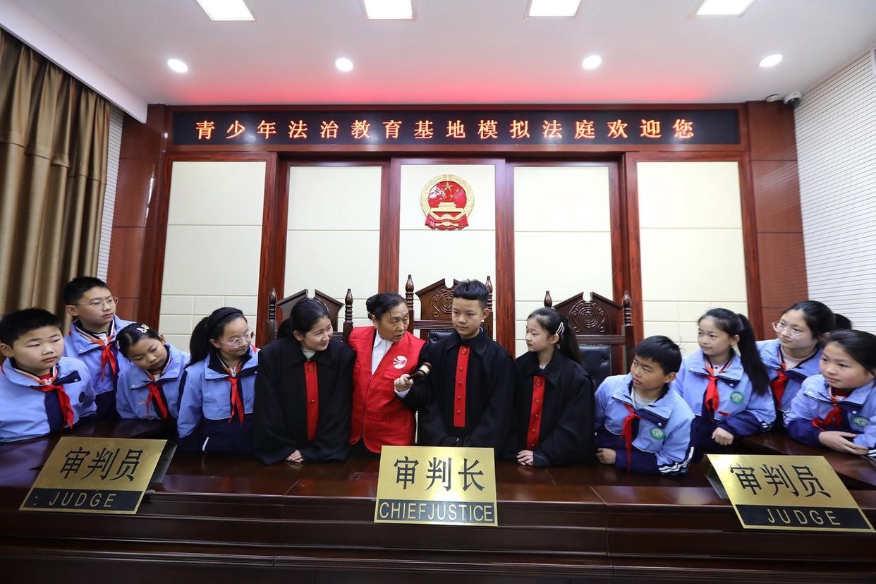 12月2日,孩子們在學(xué)習(xí)憲法知識(shí)、體驗(yàn)“模擬法庭”,“沉浸式”感知法律的神圣與威嚴(yán),在潛移默化中接受法治教育,爭做一個(gè)學(xué)法、懂法、守法的新時(shí)代好公民。(工人日報(bào)通訊員 李海濤 攝)