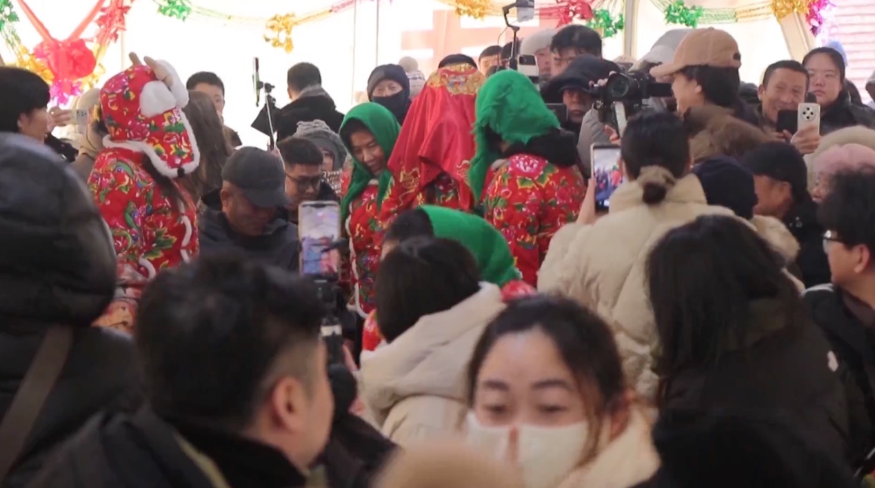 一場精心籌備的東北民俗婚禮體驗(yàn),讓大棚內(nèi)五湖四海的游客體驗(yàn)東北鄉(xiāng)土風(fēng)情,大棚外,鍋包肉、雪衣豆沙等小吃的裊裊熱氣氤氳升騰。