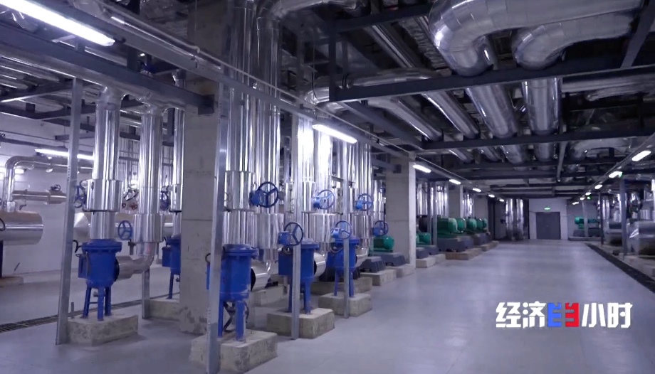 滑雪場工程師帶記者來到滑雪場地下,如同蜘蛛網(wǎng)般的設(shè)備管道映入眼簾,這里便是整個雪場的核心機(jī)房。