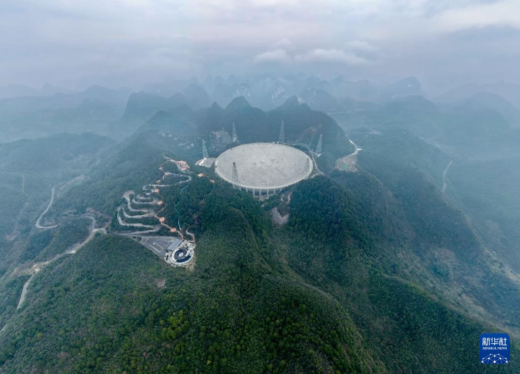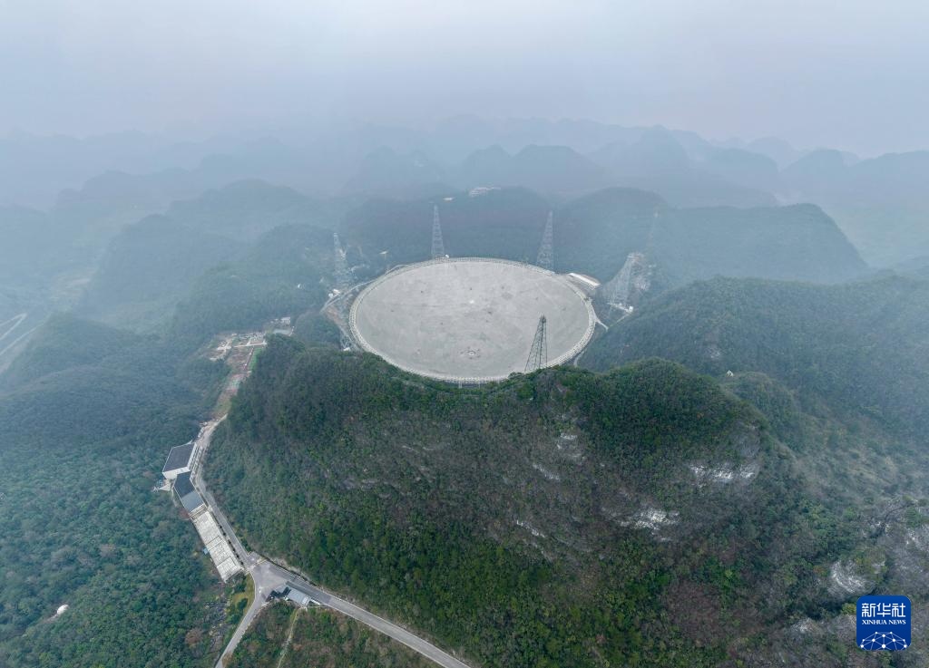 1月16日拍攝的“中國(guó)天眼”(無(wú)人機(jī)照片,維護(hù)保養(yǎng)期間拍攝)。