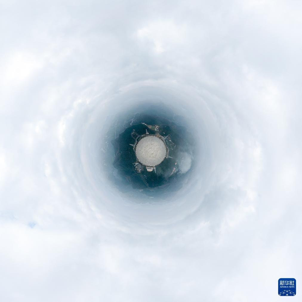 1月16日拍攝的“中國(guó)天眼”(無(wú)人機(jī)全景照片,維護(hù)保養(yǎng)期間拍攝)。