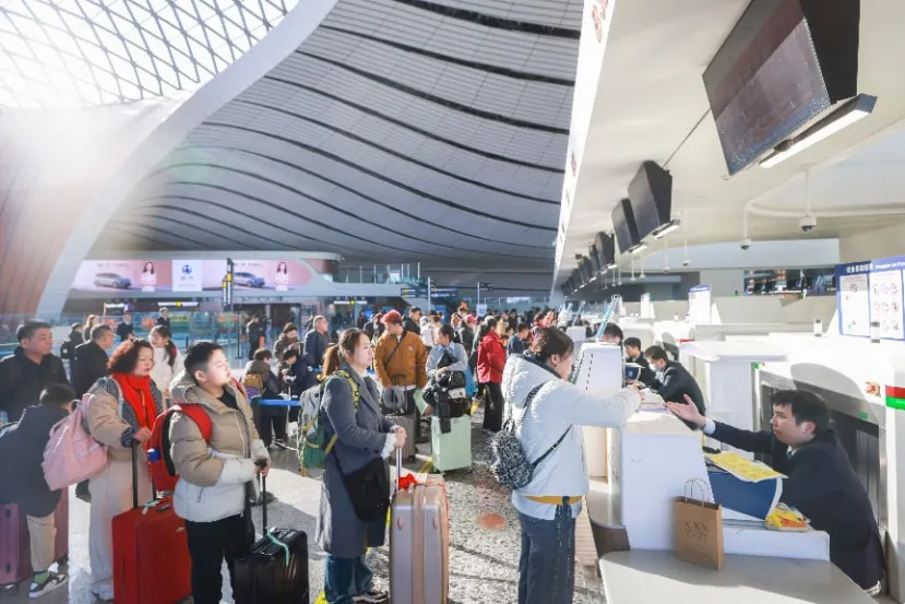 2026年2月2日,旅客在北京大興國際機場辦理值機。當日,為期40天的2026年春運拉開帷幕。中新社記者 賈天勇 攝