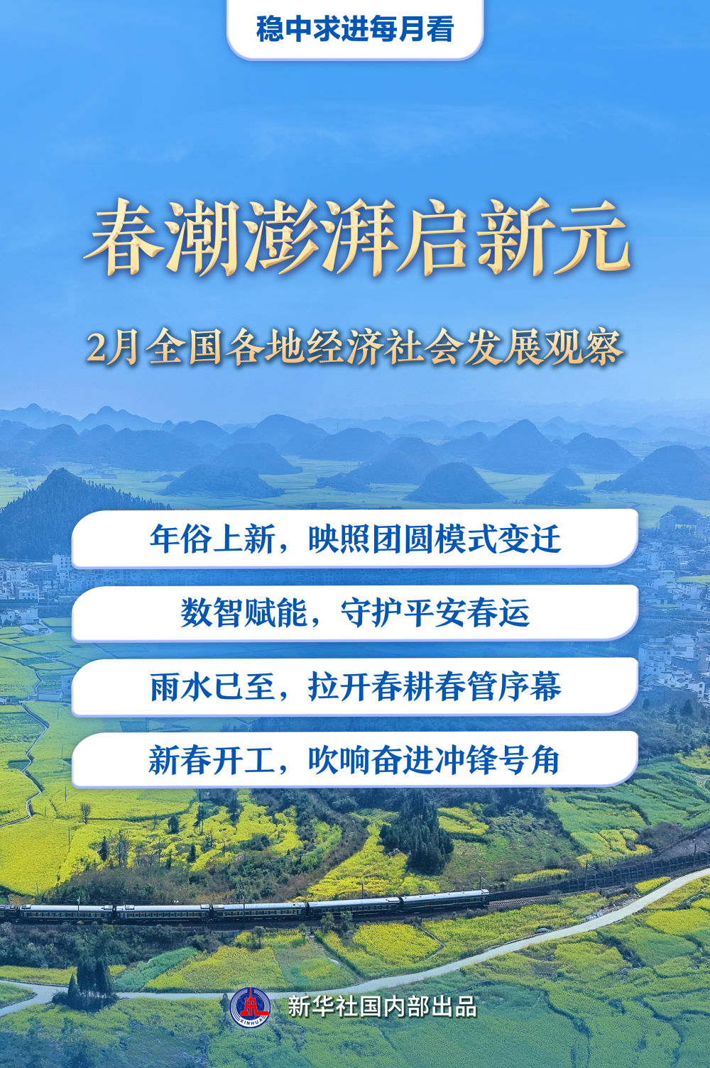 佳節(jié)歡騰,“異地過年”成流行趨勢;春運大潮,奏響“流動中國”的團圓篇章;雨水時節(jié),春耕春播春管拉開序幕;新春開工,各地吹響奮進號角……2月以來,全國各地經濟社會發(fā)展呈現“春意盎然”的新圖景。