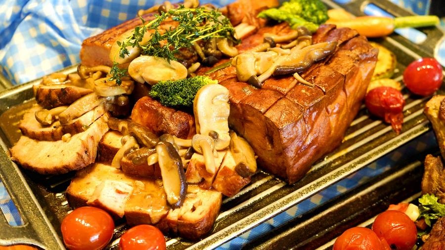 各類香腸瞬間把食客帶入德國的美食世界,德國盛產(chǎn)香腸,其肉質(zhì)緊實,肉汁豐盈。獨特的風味讓食客流連忘返?,F(xiàn)場歡快的音樂烘托著氣氛,法蘭克福香腸、蝸牛豬肉腸、圖林根香腸、慕尼黑白腸、小牛肉腸,各式香腸在食臺上翻滾。清爽的沙拉與制作工藝復雜的冷切肉,搭配各種小料一起食用,滿滿德國風味。