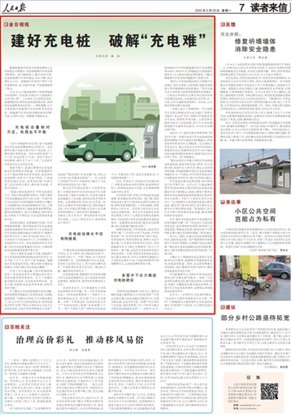 今年3月20日,《人民日報》讀者來信版“金臺視線”欄目《建好充電樁 破解“充電難”》一文,在消費者個人安裝新能源汽車充電樁方面,關注了多位“人民投訴”平臺用戶吐槽“物業(yè)不配合業(yè)主安裝充電樁以及個人充電樁的維護管理不到位”等問題。