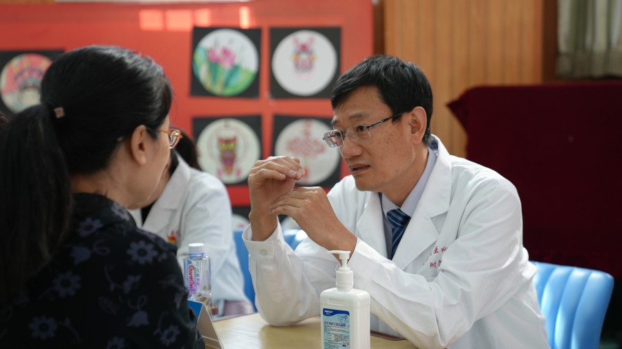 義診現場,前來咨詢就診的女教職工朋友有序候診,其中不少老師拿著體檢報告和既往病歷來到專家臺前進行詳細咨詢。此次義診,內蒙古醫(yī)科大學附屬醫(yī)院醫(yī)療烏蘭牧騎派出了神經內科、消化內科、心血管內科、骨科、甲乳外科、泌尿外科、胸外科、超聲科、中醫(yī)科、婦產生殖醫(yī)學科、康復醫(yī)學科等11個專業(yè)的19位專家及醫(yī)護骨干,為廣大園丁提供查體、疾病咨詢和健康科普服務及測量血壓、把脈問診、超聲檢查、心電圖檢查、早期胃癌篩查、早期肝癌篩查等檢測項目。附院專家耐心細致地詢問病史、解答疑問,并根據不同的病癥和個體差異給予個性化的診療建議。同時對職業(yè)女性常見的消化系統(tǒng)疾病、甲狀腺疾病、乳腺疾病、婦科疾病、腰椎間盤突出等疾病開展了專業(yè)、細致、通俗的健康科普。