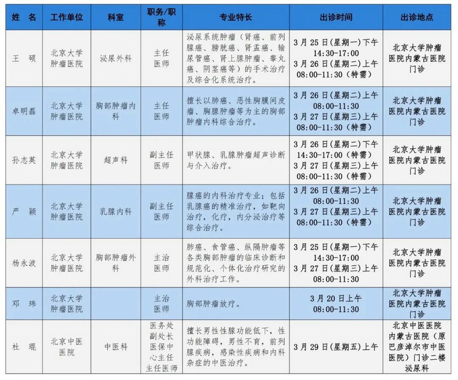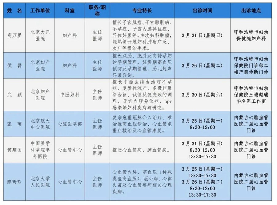 京蒙協(xié)作 政協(xié)助力。每周有北京相關(guān)協(xié)作醫(yī)院專家來呼和浩特出診,現(xiàn)將本周專家出診信息予以發(fā)布。