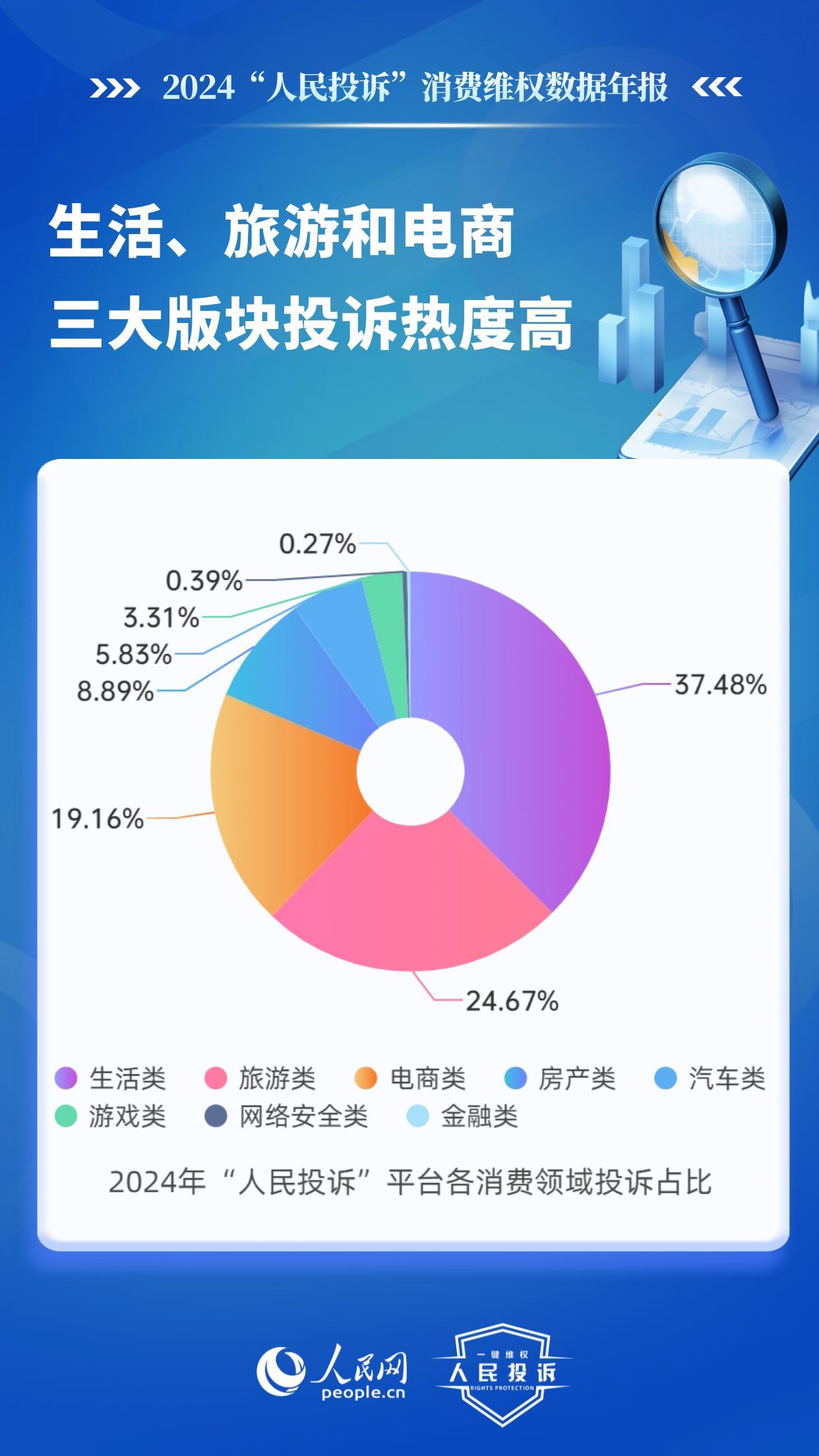 2024年,旅游消費(fèi)持續(xù)火爆,以舊換新“換”出消費(fèi)新活力,直播電商“品質(zhì)化”轉(zhuǎn)型,新能源汽車購銷兩旺……在消費(fèi)市場熱力持續(xù)提升的背景下,旅游產(chǎn)品退訂難,電商促銷虛假價保,直播間營銷違規(guī),車險車貸服務(wù)欺詐,AI培訓(xùn)貨不對板等消費(fèi)侵權(quán)問題引發(fā)廣泛關(guān)注。“人民投訴”發(fā)布年報帶您回顧這一年來,平臺消費(fèi)維權(quán)熱點(diǎn)和入駐企業(yè)積極處理糾紛的舉措。