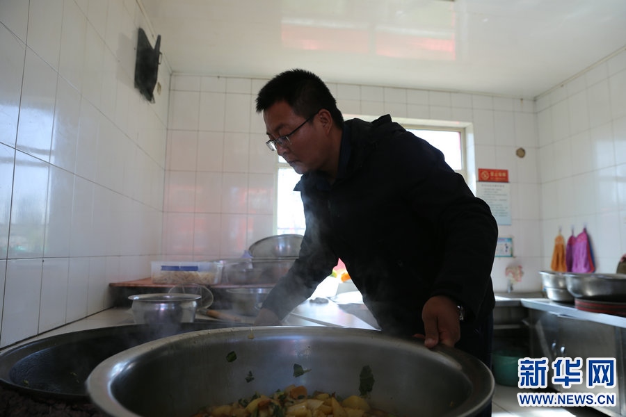 張慧聰?shù)囊惶鞆牧璩?點開始,喂豬、燒鍋爐、摘菜、盯食材、上課、查宿舍,豬一天要喂三次、鍋爐也要頻繁關(guān)注、三餐食材一頓也不能落、四個年級每班每天都要上課、每隔一段時間還得清理旱廁……這里沒有一間屬于他的辦公室,但這里卻處處是他的“辦公室”。新華網(wǎng) 李倩攝