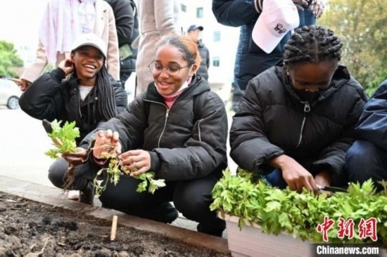 同濟(jì)大學(xué)的留學(xué)生們一起種下艾草、杜仲等中草藥,零距離感受中醫(yī)文化的奇妙之處。同濟(jì)大學(xué)供圖
