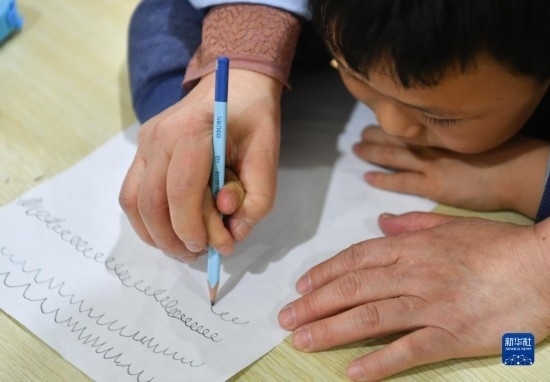 3月30日,在西安市金色陽(yáng)光康復(fù)中心,特教老師指導(dǎo)孩子進(jìn)行繪畫練習(xí)。