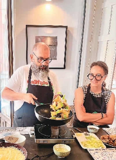 米蓋爾選修的是中華廚藝課,不僅自己學習,還把太太拉來一起學做中國菜。“圣誕晚宴全家聚會時,我們做了幾道中國菜,把全家人驚艷到了。”米蓋爾說。