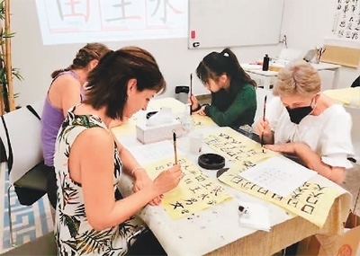 | 西班牙格大孔院學員正在上中國書法課。 |